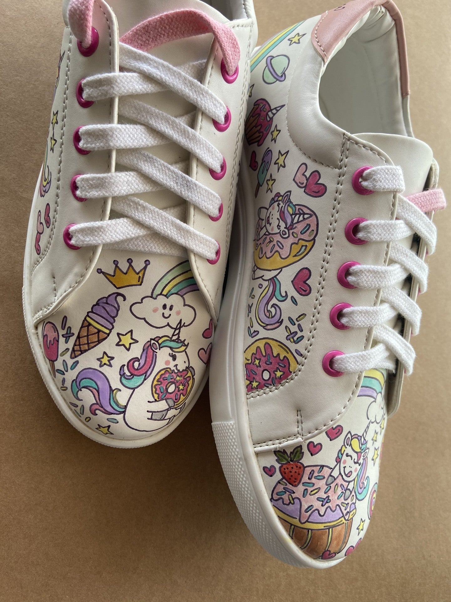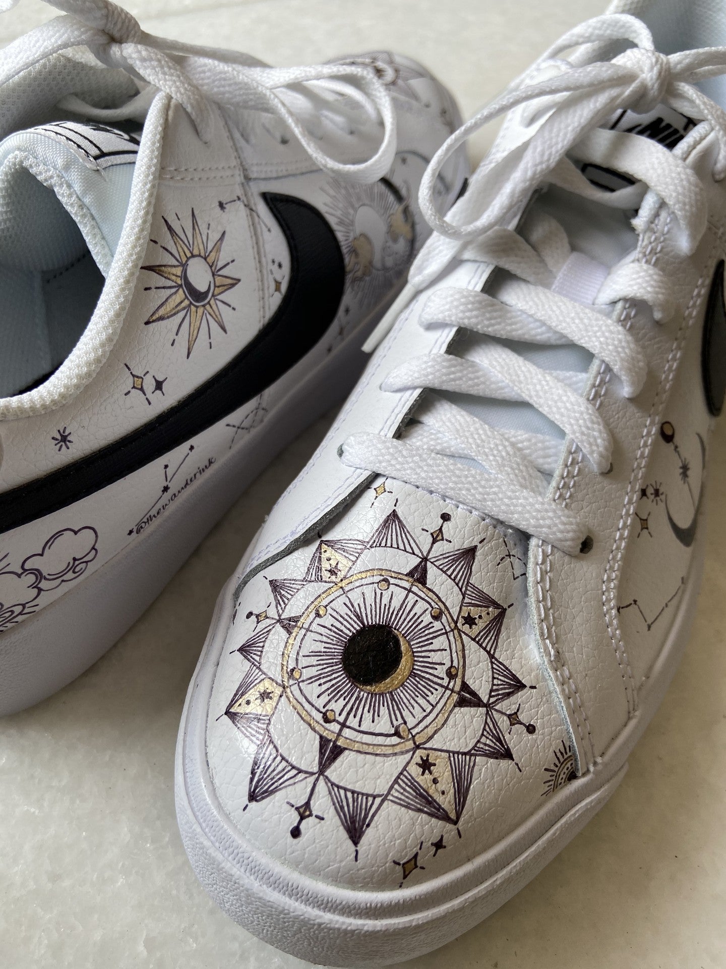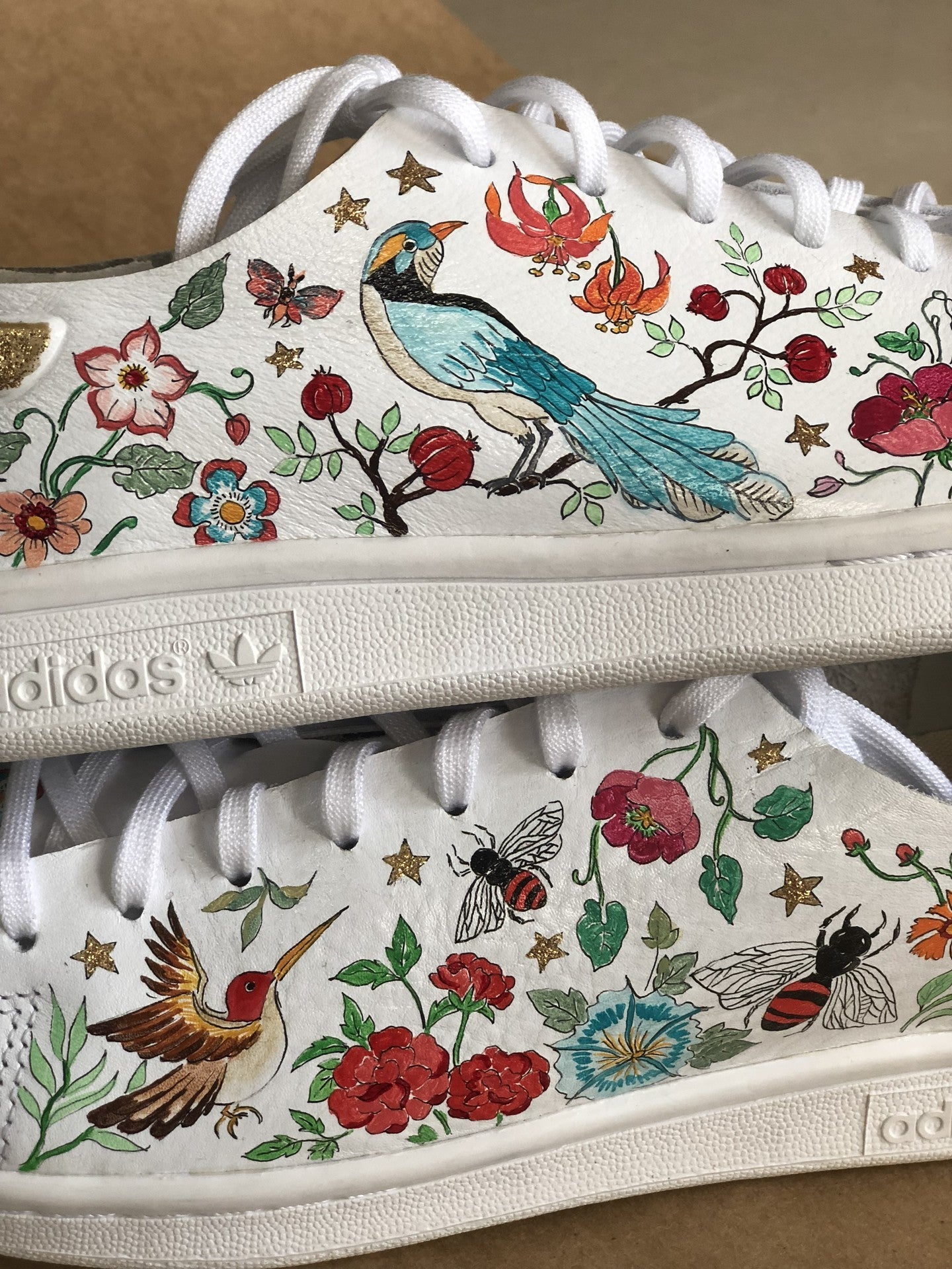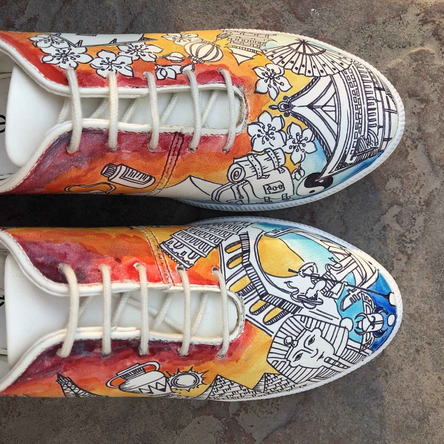 From hating sneakers to marrying a sneakerhead... I have come a long way. Some are travel-inspired, others romanticising a person's love story, some movie-related, some animation themed, baby pairs, others florally decked...this archive is filled with my greatest sneaker art creations, each customised to the imagination, passion or love of the wearer.